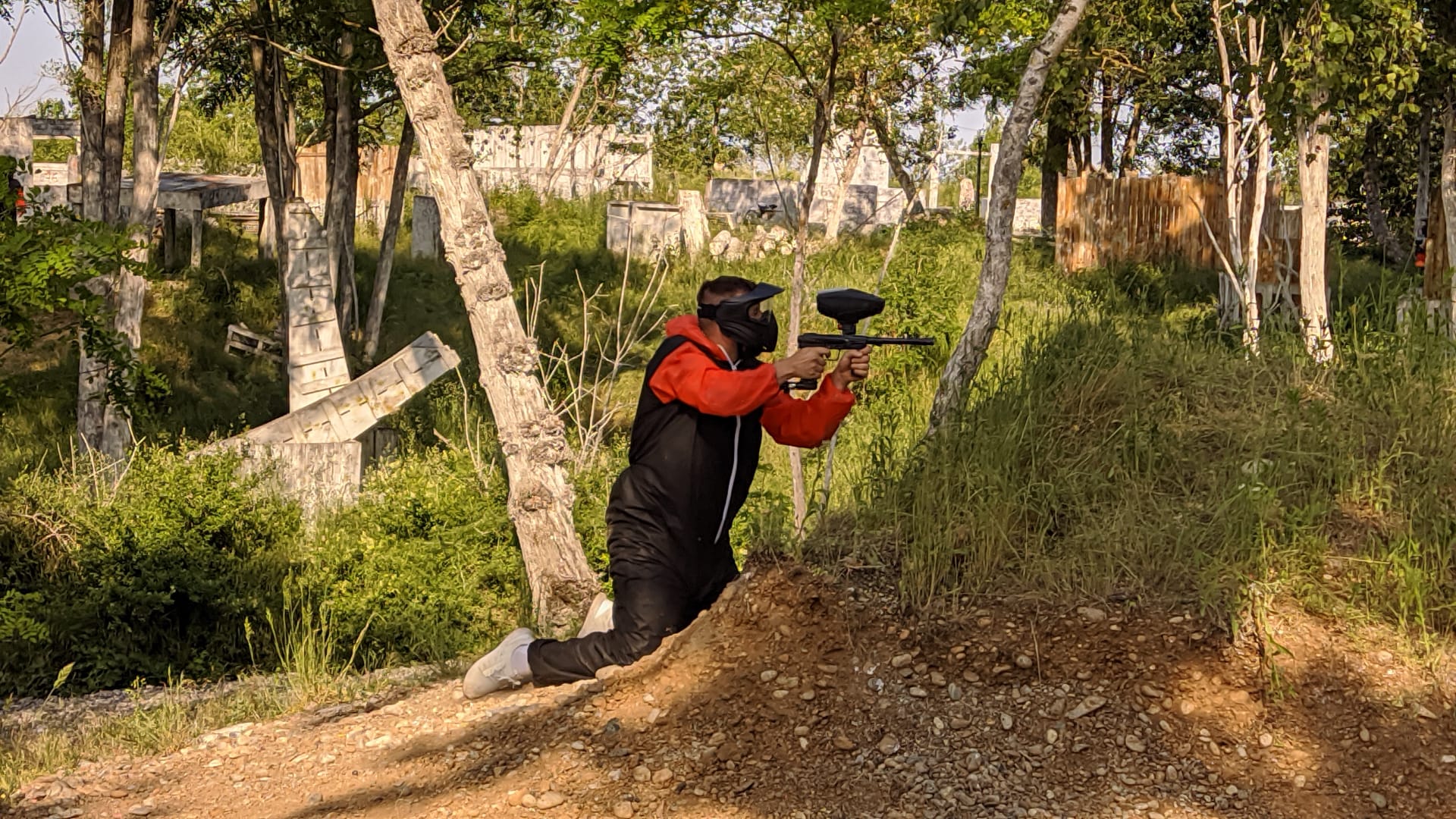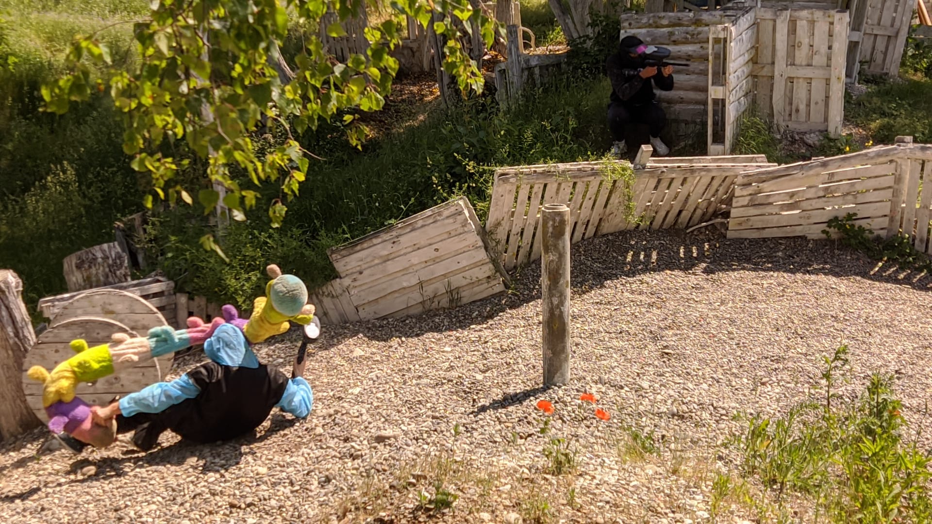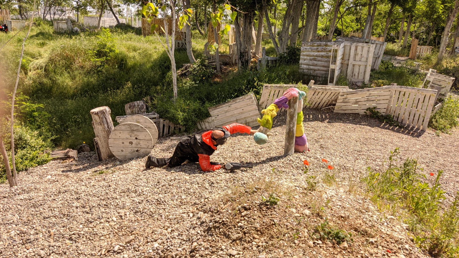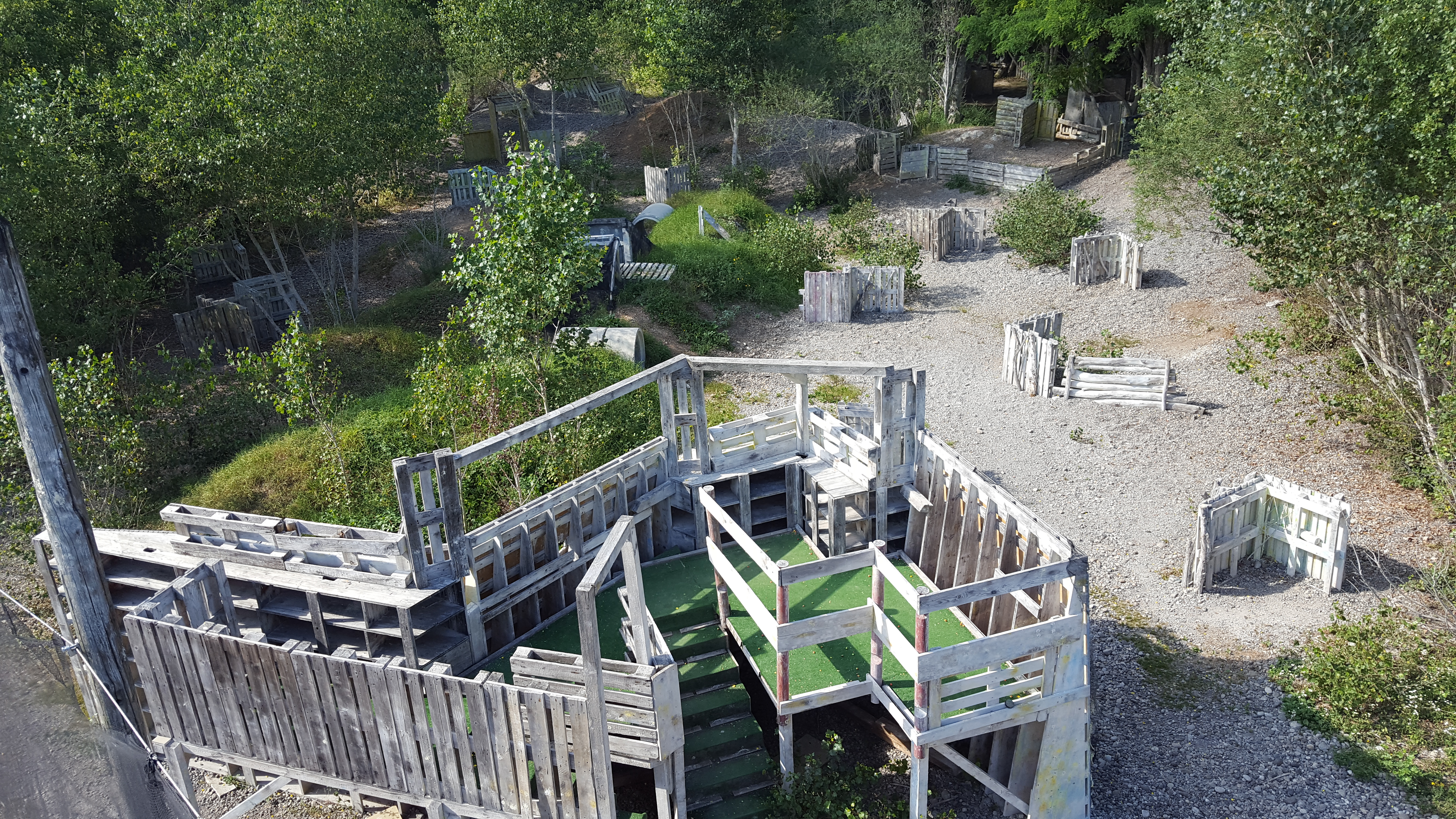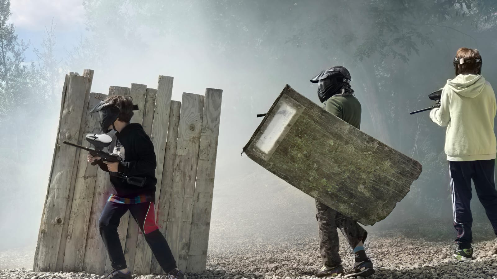 Calibre 68 (dès 12 ans) et calibre 50 soft (dès 7 ans). Terrains extérieurs avec obstacles et scénarios variés.